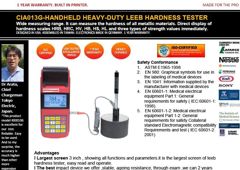 CIA013G-COMPLETE LARGE SCREEN LEEB HARDNESS TESTER W PRINTER/USB SOFTWARE/MENU DISPLAY