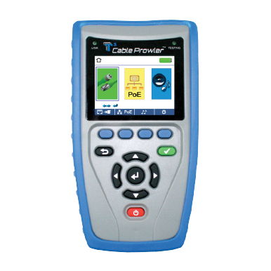 Tests PoE to ensure adequate power for powered devices such as VoIP phones, and reports current link speed and link capabilities for active Ethernet drops up to 1 Gbps.