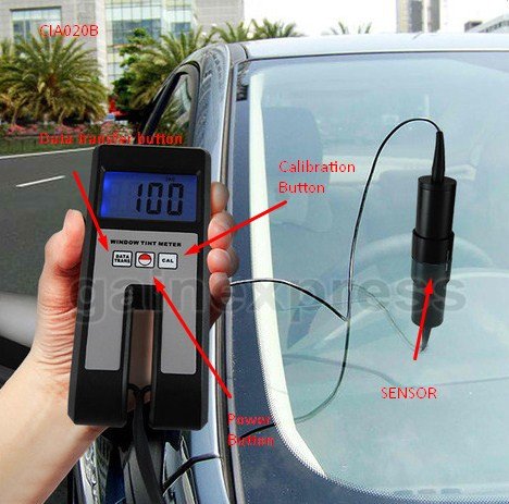 This Window Tint Meter is a hand held device that measures the amount of light that passes through a window. It measures the total amount of Visual Light Transmission (VLT) through a window and any coating (tint film) on that window. This is designed to measure the total VLT of a window after it has been treated with after market window film. The device slides over a partially rolled down window, does its calculations, and in seconds displays the readings on the LCD. Additional features includes continous measuring mode and it has its own internal light source, so the meter will work day or night.