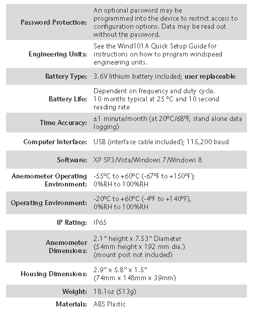 | Dimensions | Data Logger: 1.4 in x 2.5 in x 0.6 in (36 mm x 64 mm x 16 mm) |