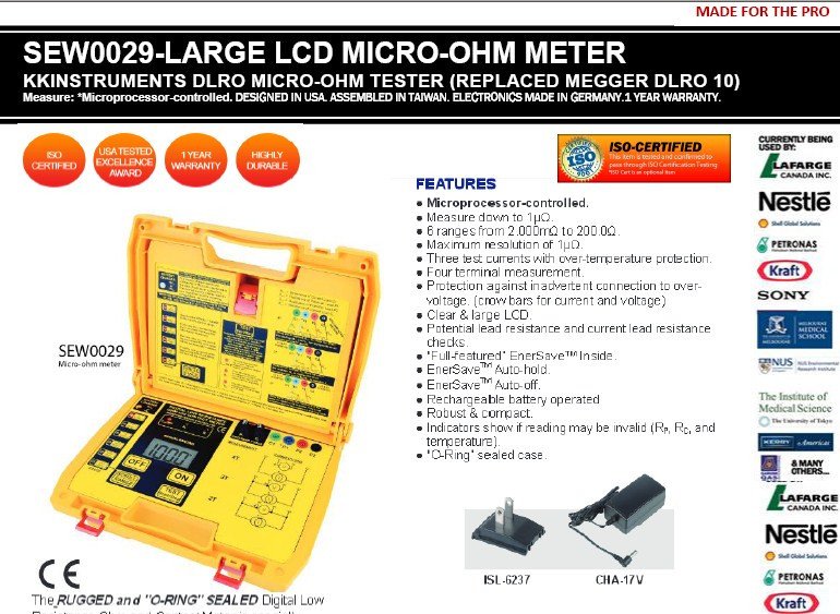 Featured item SEW0029-KKINSTRUMENTS DLRO MICRO-OHM TESTER (REPLACED MEGGER DLRO 10)